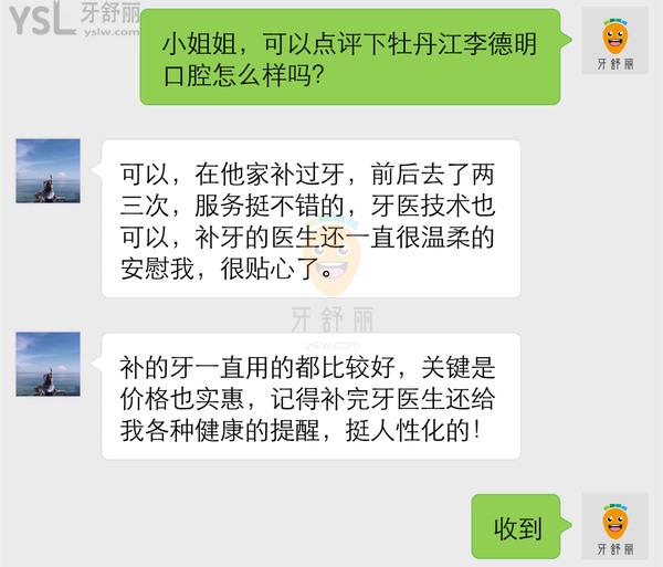 網(wǎng)友點(diǎn)評牡丹江李德明口腔怎么樣: