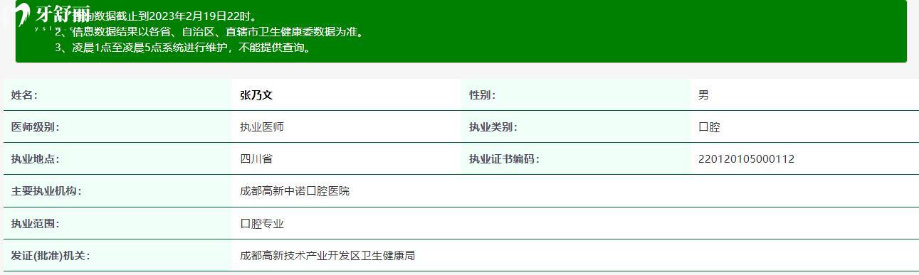 一、口腔醫(yī)生張乃文的執(zhí)業(yè)注冊(cè)信息